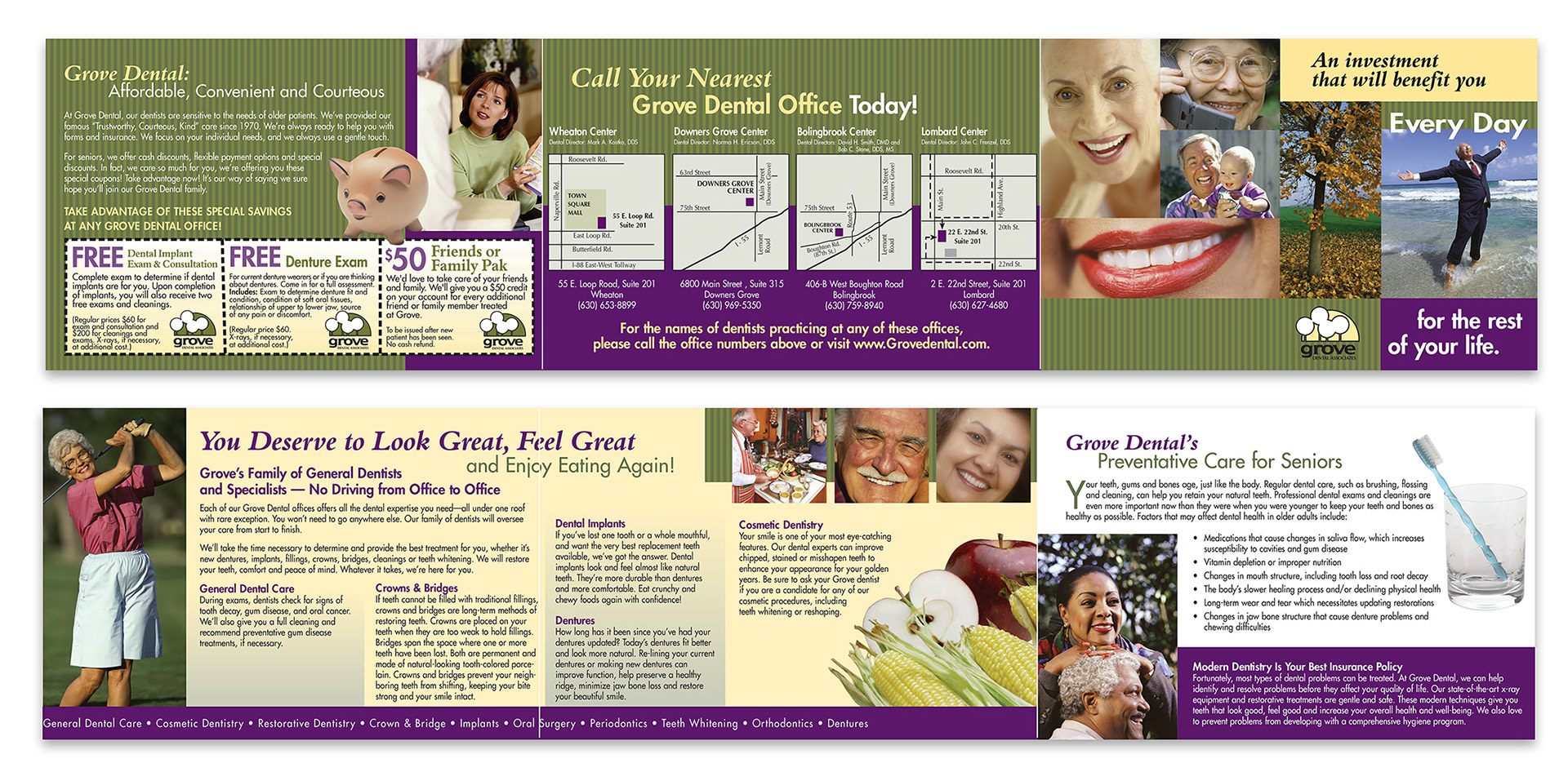 Client: Outside-The-Box Marketing, Alta Loma CA – Grove Dental Trip-Fold Brochure