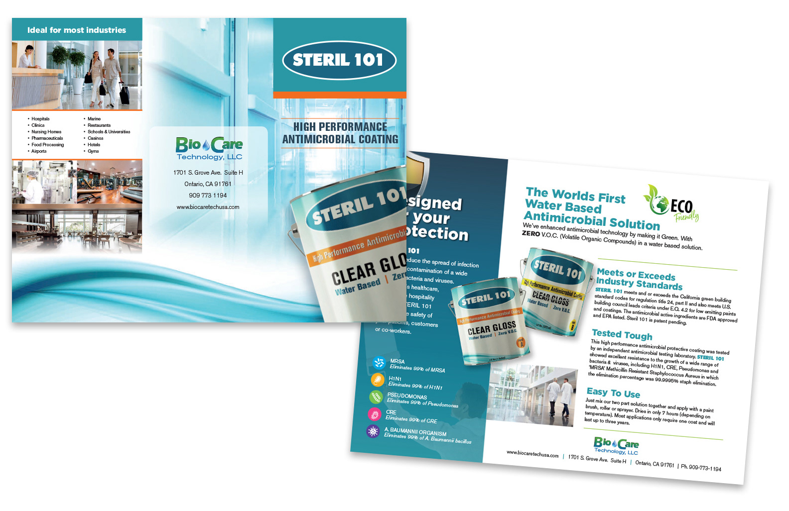 Client: Bio Care Technology, Santa Ana CA – Steril 101 Antimicrobial Coating, Tri-Fold Brochure